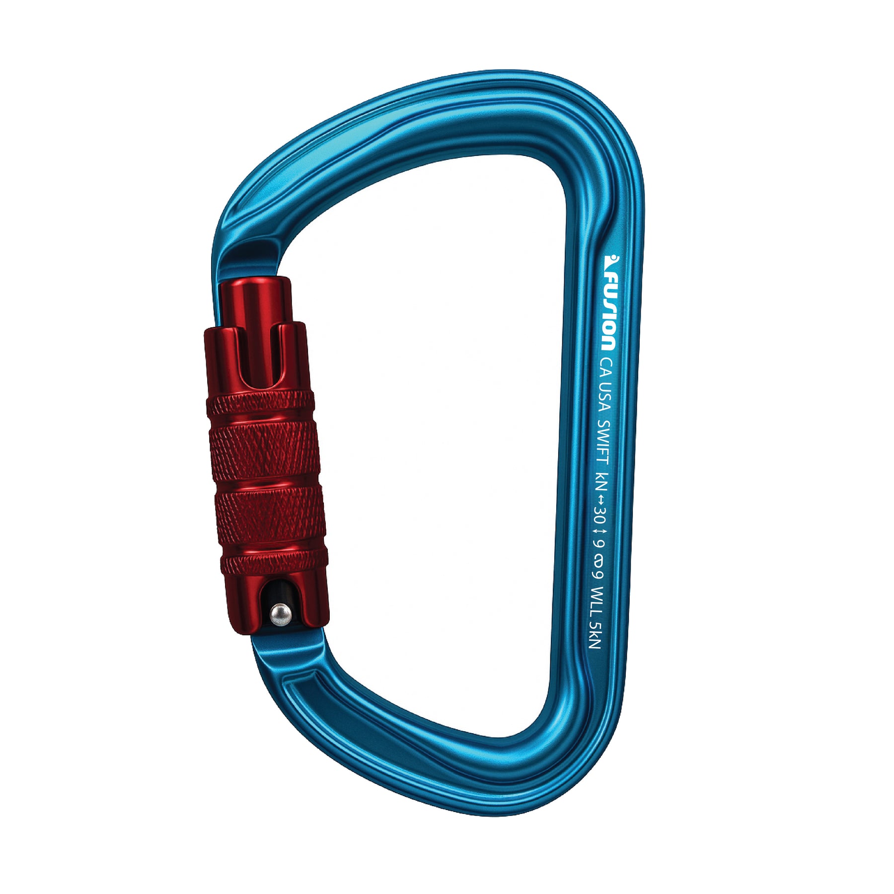 The Swift triple locking aluminum carabiner in Red and blue features a modified D-shape for strength and light weight. Triple locking gate ensures extra security, and the pin nose design offers strong, snag-free performance. Ideal for climbing, rigging, and outdoor use where safety and reliability matter.