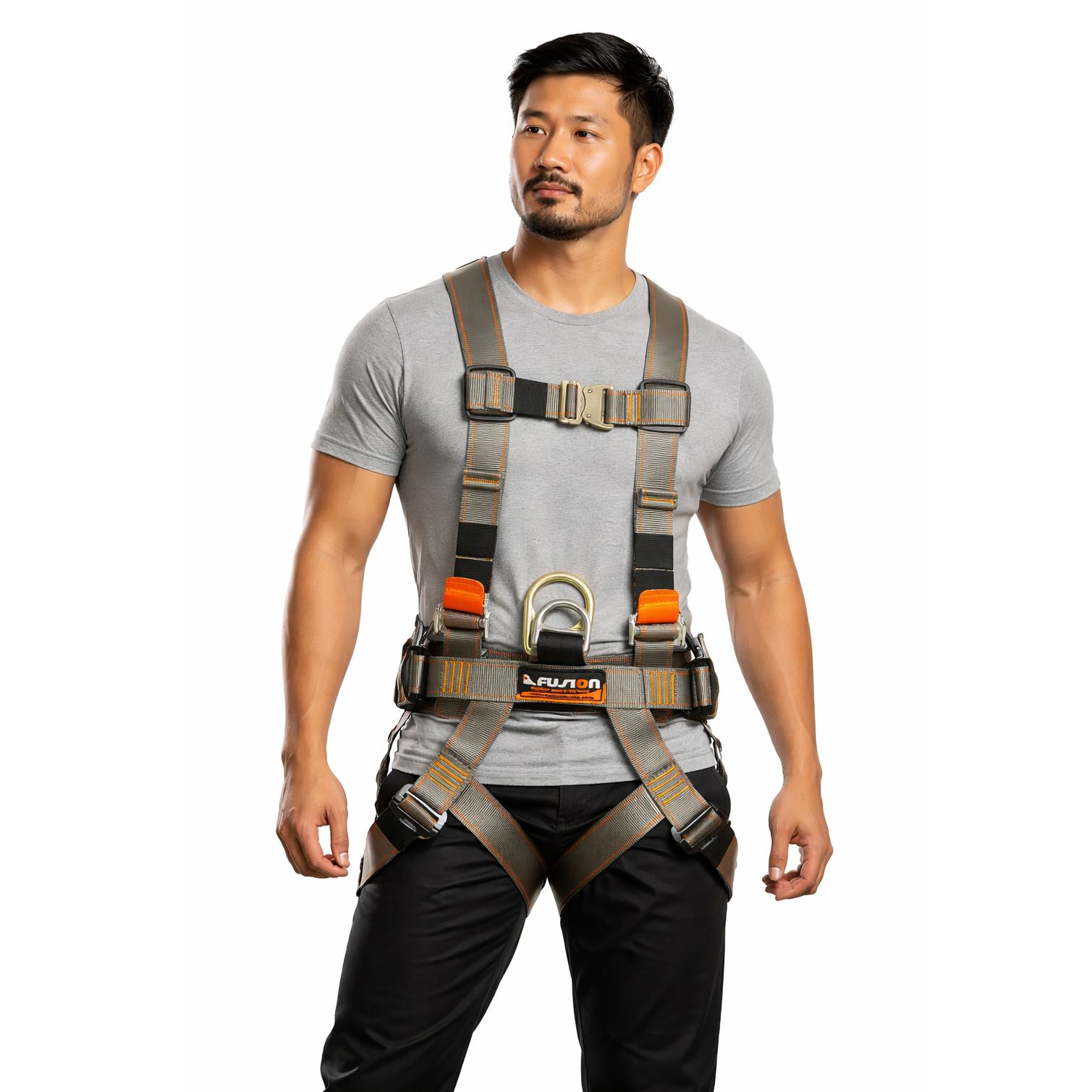El arnés de cuerpo entero Fusion Climb Plemistis H-Style ofrece seguridad certificada según la norma ANSI Z359.11-2022 para profesionales de tirolesas y circuitos de desafío. Diseñado con puntos de sujeción en el pecho y la cintura, este robusto arnés es ideal para entornos verticales de alto riesgo.