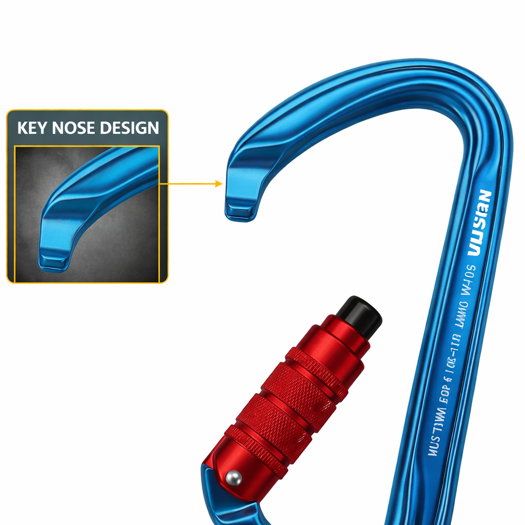 - Pin Nose Gate is a notch in the nose of the carabiner to maintain its structure and strength. This nose type is typically stronger.